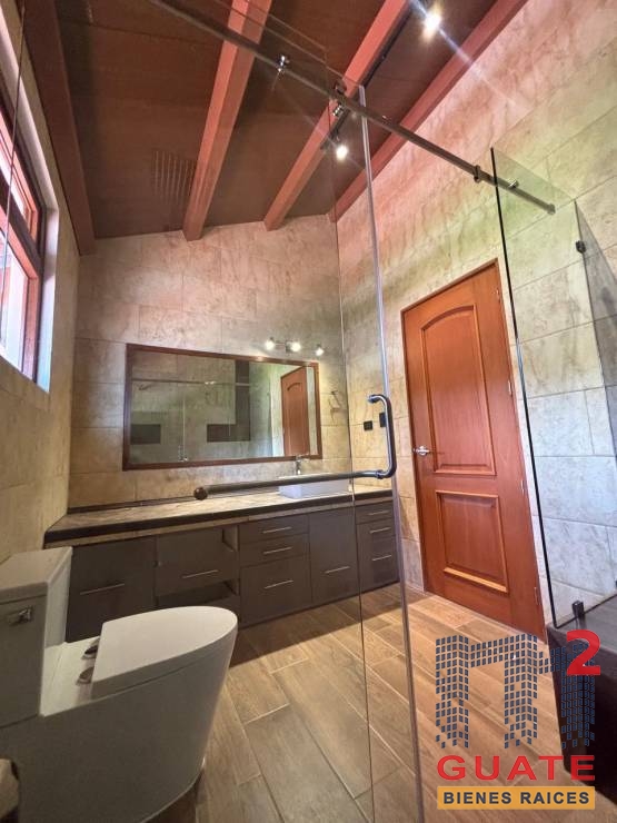 Casa en Renta Antigua Guatemala, ubicación privilegiada con vista al volcán. 3 dormitorios con closet, 1 baño completo + ducha. Sala - comedor y cocina. Lavandería con pila + patio. 95 mt2 de jardín privado. 2 parqueos (+area para 2 más) porche de 45m2. Dormitorio y baño de servicio. Jardines y caminamientos, capilla y fuente central, áreas sociales y area de fogata
