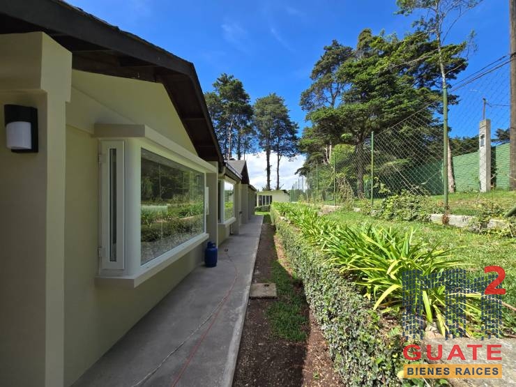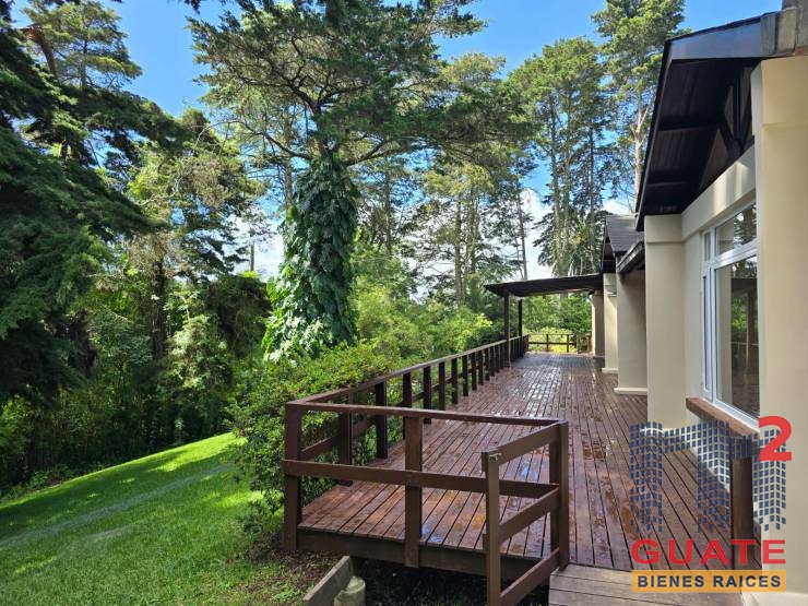 Casa dentro de condominio con amplio jardín tipo cabaña, totalmente remodelada. Espacios amplios, e iluminados. 3 habitaciones, principal con baño completo, walking closet y salida a precioso deck. Estudio/sala familiar, amplio deck, sala con chimenea, comedor, cocina con modernos gabinetes y línea blanca. Baño de visitas, recibidor. Espacio independiente para lavandería y habitación de servicio. Area de parqueo techado para 3 vehículos y mucho espacio mas. Precioso jardín con árboles.